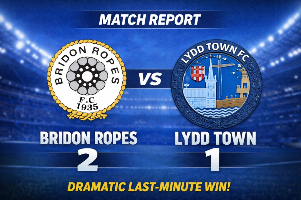 SCEFL First Division | Saturday 3pm KO Venue: Meridian Sports & Social Club, Charlton SE7 Bridon Ropes secured a dramatic 2–1 victory over Lydd Town at Meridian Sports & Social Club, with a stoppage time winner sealing all three points and marking the first win under new manager Uche Ibemere. Bridon began with purpose and […]